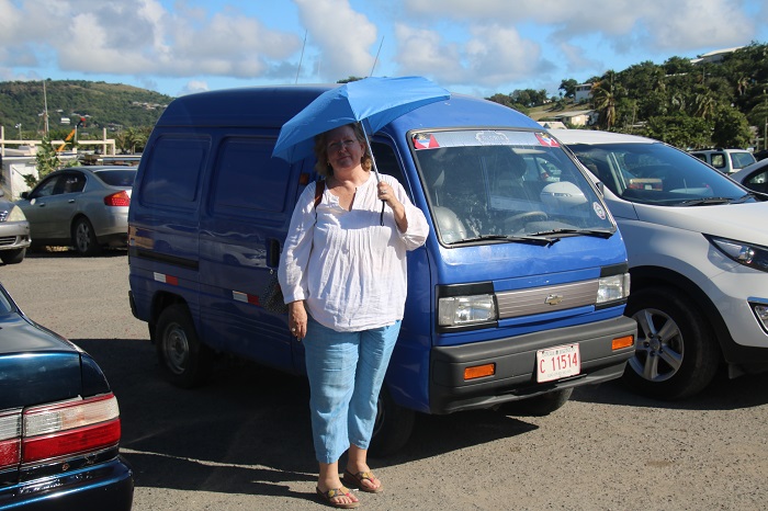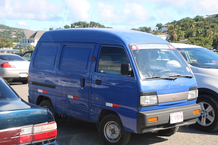 This is AYC Commodore Franklyn Braithwaite and me exchanging burgees, signifying a formal connection between the two clubs. And, speaking of connections, how about this Suzuki mini truck?  It’s a “box” version of my own but it has a Chevy logo on it.  There’s no mistaking this and I am certain that it is indeed a “sister truck” to mine, “Pandora’s box truck”.