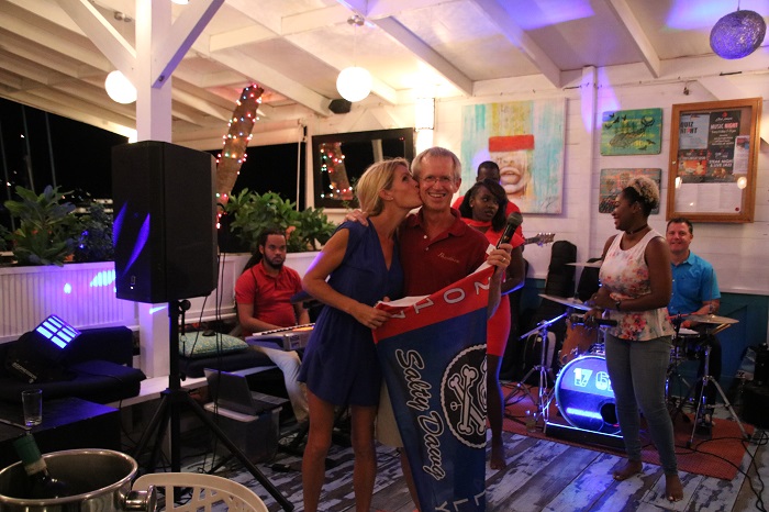 For me that was the ultimate compliment and made all the work that went into our arrival events totally worthwhile.    Well, almost as good as the peck on the cheek I got from Angie, the woman who organized a number of our events and put on a spectacular Thanksgiving feast for all the Dawgs on our final night together as a fleet as I presented her with one of our rally flags.So now, back home for the holidays and our family, a wonderful way to signal the end of my role as “port captain Antigua” for the Salty Dawg Rally.