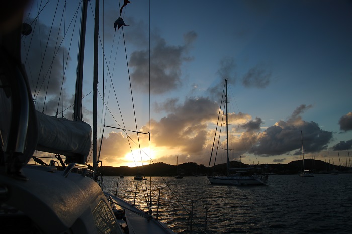 Yes, sometimes being aboard can be tough when things aren’t going well but what makes it worthwhile is moments like first light in a peaceful harbor.Or when a morning shower gives way to a double rainbow.Or ending the day with a beautiful sunset…