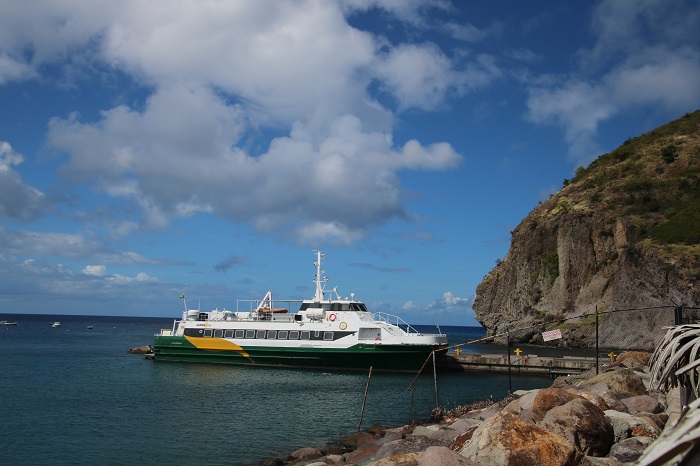 We did ferry from St. Maarten to Saba, which is similar, but smaller, steeper, without the destruction, easier from the customs viewpoint and likewise difficult to land on.