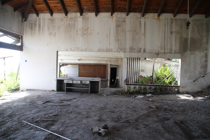 At an particularly impressive overlook, we entered the ruins of a once grand resort. The floor had a thick layer of ash.