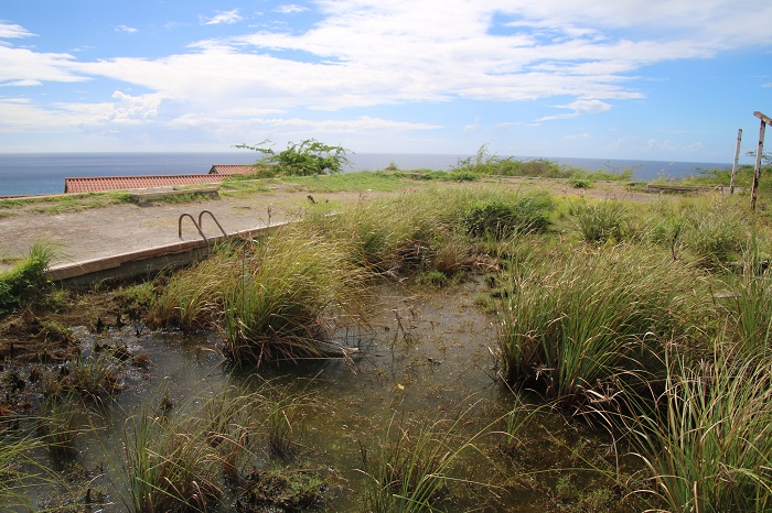 Out back was patio with what was once a lovely pool, now full to the brim with ash. The ash is very fertile though, so nature has quickly taken advantage of the well fertilized soil and turned the pool into marshland.