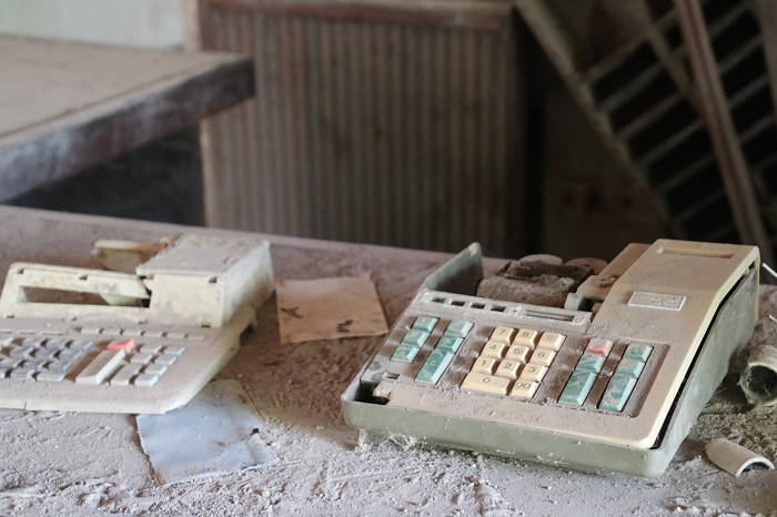 A calculator on the welcome desk suggested how fast everyone evacuated.