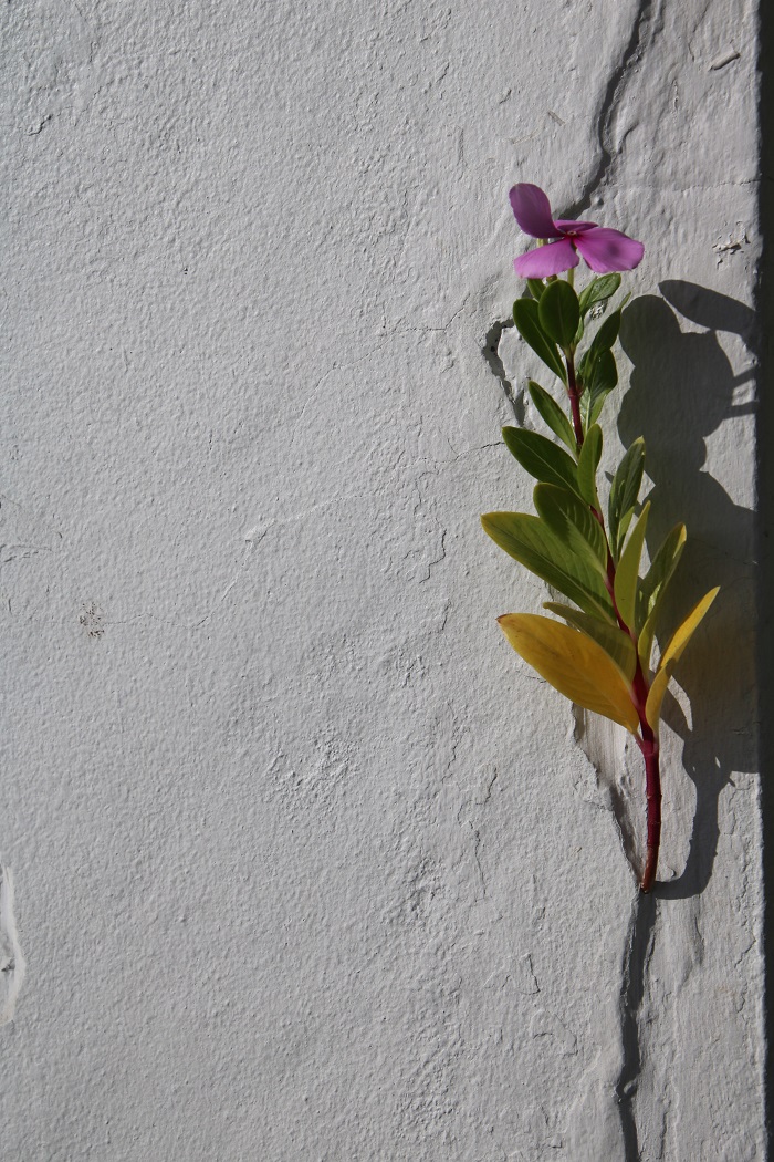 And this flowering plant clinging to a crack in a whitewashed cement wall of someone’s home is evidence of the power of nature to rebuild in the shadow of unspeakable destruction.