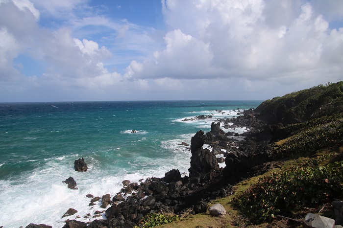 St Kitts is a volcanic island, as most are in this area, although this one is not currently active. A popular spot to visit is on the most northerly end of the island called “black rock” by the locals. Again, swarmed with tour buses, the view of the volcanic rock was impressive and gives meaning to the term “lee shore”. Not a great spot to run aground. Good luck with that.