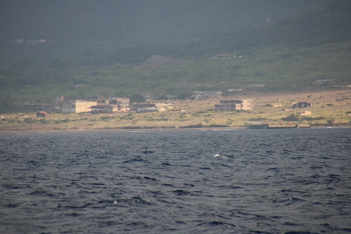 A short distance to the southern end of the island we passed the remains of what was once the capitol of Montserrat before the volcano wiped it out. Seeing these buildings, once a thriving city, under tons of ash and mud was sobering. It was hard to see due to the smoke from the still active volcano.