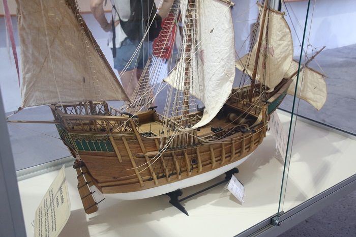 Interestingly, there was also a model of the Santa Maria, Columbus’s ship.   Oops, the description of why it was in the museum was in French.  And, speaking of nice views, which I was earlier in the post.  Nice spot to have our picture taken.