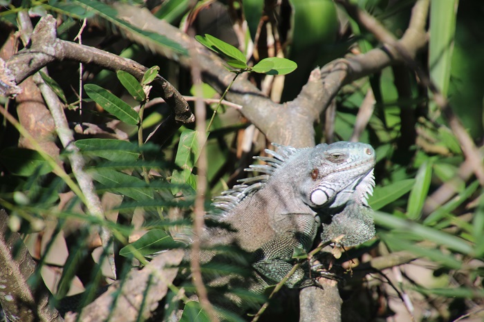 The fort is in amazing shape after all these years.   It’s remarkable to see how flawless the walls are.  Not a wave or ripple.   Perfect construction. These large iguanas were in the nearby trees everywhere.  They are very territorial and this big guy was standing his ground in spite of our invasion of his space.