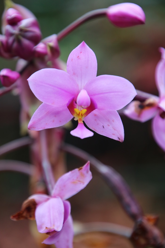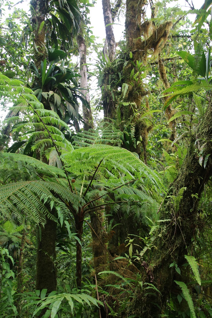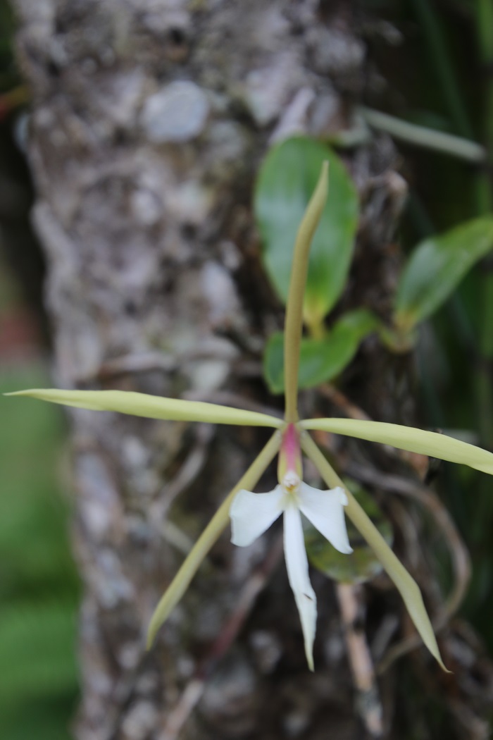 I just loved the giant ferns that were everywhere, some 40′ tall. There are many species of orchids in the forest.   Most grow hundreds of feet up in the treetop canopy but some thrive in the deep shade on the forest floor.