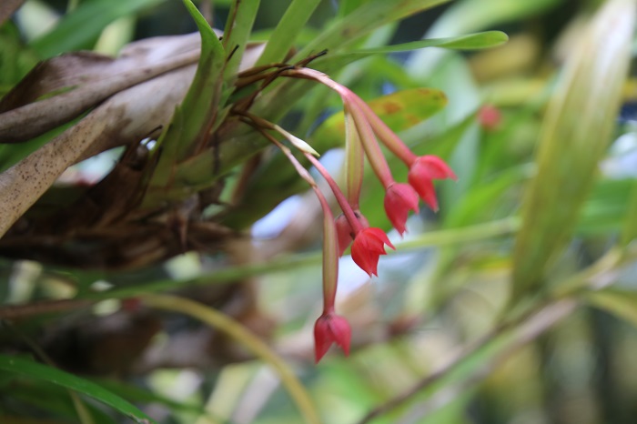 Some are very showy.This one, I believe is pollinated by a moth at night and has a strong sweet scent in the evening. This orchid’s flowers were less than 1/2″ long.  This flower, not an orchid, looked more like a paper origami sculpture than a flower, tiny and delicate.