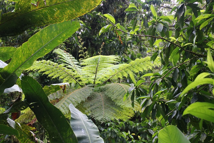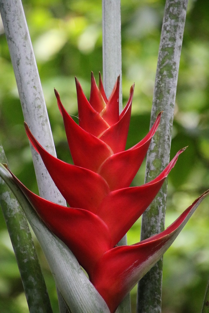 A wonderful mix of textures.  Some not so dainty.   This showy bract stands nearly 2′ tall and a flaming red that stands out in the forest. A not so dainty emerging fern fiddle.  Of course, plenty of massive plants all fighting to reach the sun. After so many years with our own home greenhouse that required a huge amount of care it’s remarkable to see these plants in their native land, where nature does all her magnificent work.