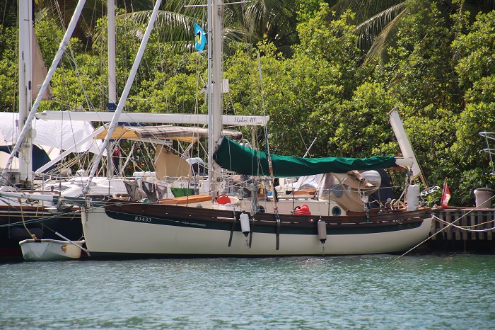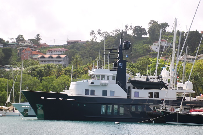 Ok, how about some boat watching?  I love this little Lyle Hess Bristol Channel Cutter.  She’s one of a long production run for this petite 24′ “go anywhere design.  Tiny and very popular with a cult like following since her introduction in the 80s.  Perhaps something with a bit more creature comfort is what you’re looking for.   RH3 is a beautiful explorer yacht that went through a major refit just a few years ago.  She’s rugged and looks the part of a world cruiser, which she is.  Check out this article about what she’s all about.    Her tenders are impressive and this one, that I guess they must tow around, would fit right in a James Bond movie.   And, that doesn’t even count the two smaller equally sinister looking ones parked on the upper deck.  His and hers?I am particularly struck by this Lefite 44.   She is an 80s vintage and yet doesn’t look it as her owner has lovingly maintained her, along with some excellent craftsmen in Trinidad where she has been stored for a number of summer seasons.    She must be the best of her breed and I understand that she’s for sale.  Bob Perry, perhaps the leading designer of cruising boats, designed her back in 1978.   Read about this iconic design here.   Her recent paint job and fresh canvas really make her shine.  Nice boat.And speaking of nice boats.  How about Pandora sitting pretty in this tiny charming harbor?Well, it’s almost lunchtime and, as usual, not a lot has happened aboard Pandroa so I’d better, as my father used to say, “get the lead out”.   Actually, I have to clear out today so we can leave in the morning for the Pitons and then on to Bequia.   That is, of course, unless we decide to spend one more day here.