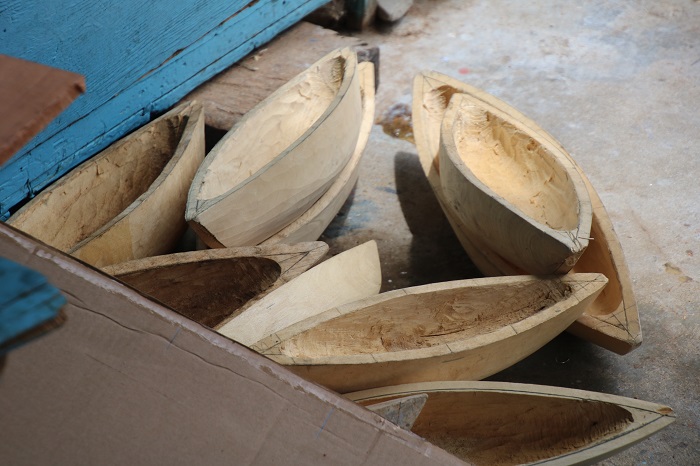 Canvas work is just one of the excellent products that are produced here in Bequia.   There is also a long tradition of building boats and model boats and there are still a number of craftsman that are continuing the tradition.   The model boats are actually carved out of a log from a native tree.  After marking up the log they carve it into a rough shape of the hull.   And, after a while, a finished model boat.  Many actually.   Some are of famous yachts and you can also commission a model of your own boat.  However, the bulk pf the models are of the traditional working boats of Bequia, in particular, those used to hunt whales, which is still legal, if tightly controlled.  They hunt, using only sail powered boats, and harpoon a few humpback whales each year along with a number of smaller pilot whales.