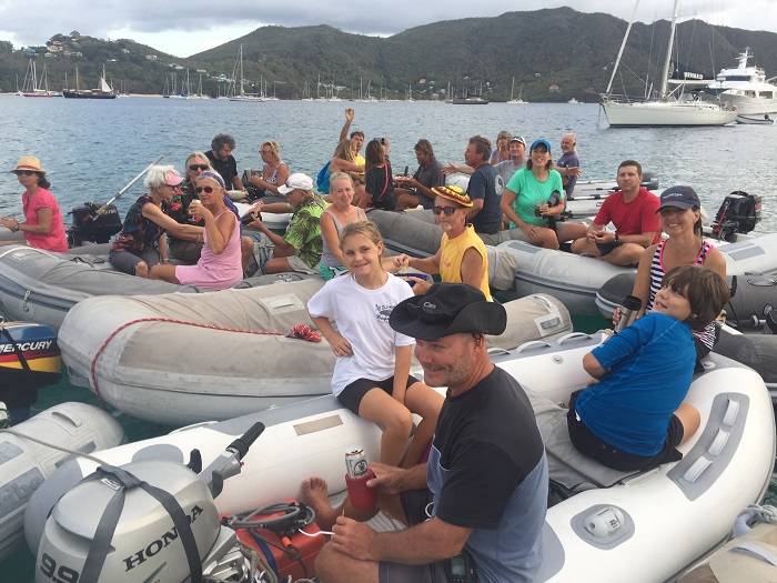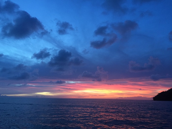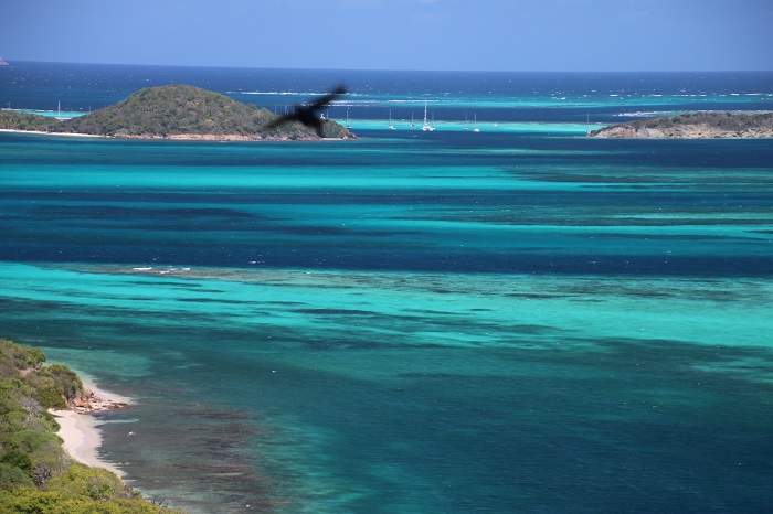 We enjoyed our time meeting up with the many couples that we met through the Salty Dawg Rally.  In Bequia we participated in a “dinghy drift” organized by fellow “Dawg” Lynn on Roxy.  She’s a high energy girl and to spend time with her is always fun.   Alas, she’s not in this photo.  As if the evening wasn’t fun enough already, we were treated to perhaps the most spectacular tropical sunset of the season.  Made even better with Sea Cloud II in the frame.  After a bitAfter Bequia we headed south to the Tobago Cays, described by some as a lot like the Bahamas with beautiful turquoise waters.  And great snorkeling, if not great pictures.  I guess it’s time for a new underwater camera.   With this camera I guess I have to say “you had to be there”.