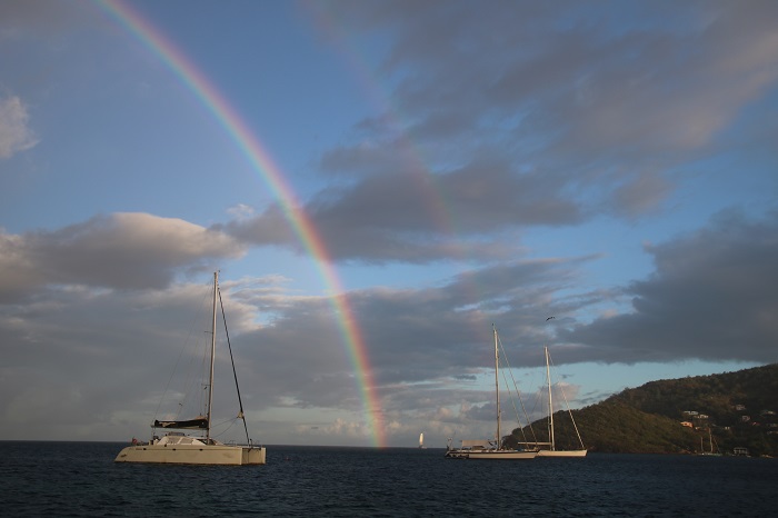 As if to say “don’t forget us”, we were greeted by a fabulous rainbow in Bequia as we left to head north yesterday after clearing out.  As I write this we are on a mooring in Marigot, St Lucia, where Brenda will head out on Friday and my friend Craig will join me for ten days.  Craig and I will make our way up to Antigua and I’ll be joined by crew for the run home.