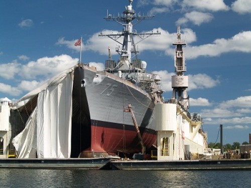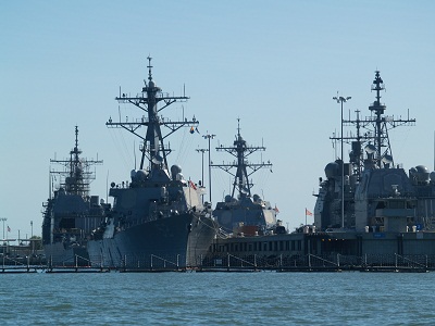 Ship after ship were lined up, most undergoing refitting.  A few were under construction too.  We even saw a few submarines.  These guys are buying a lot of grey paint.