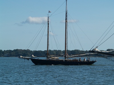 This cruise ship docked in the center of Norfolk was just a bit different than the Navy ships.  We even spied a boat from Norwalk Yacht Club where we were a member for many years.  Adventure is a big wooden schooner that was in Norfolk participating in a schooner rendezvous.   It’s a really great boat.  I spoke with the owner via the VHF and he told me that he was headed to south to participate in, among other events including the Antigua antique boat regatta, I think.