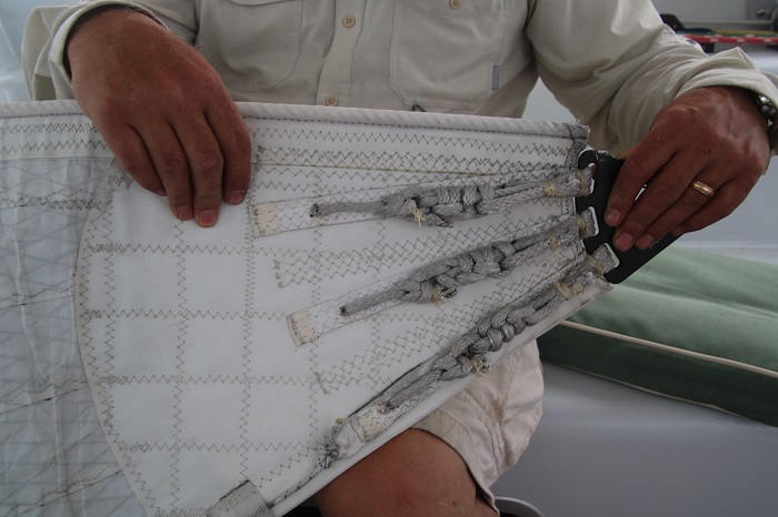 Actually, I was a little worse for wear after my trip up the mast way back, 600 miles south of Bermuda when the headboard gave way and the mainsail came crashing down onto the deck.