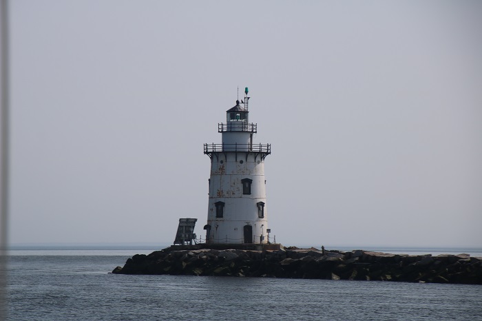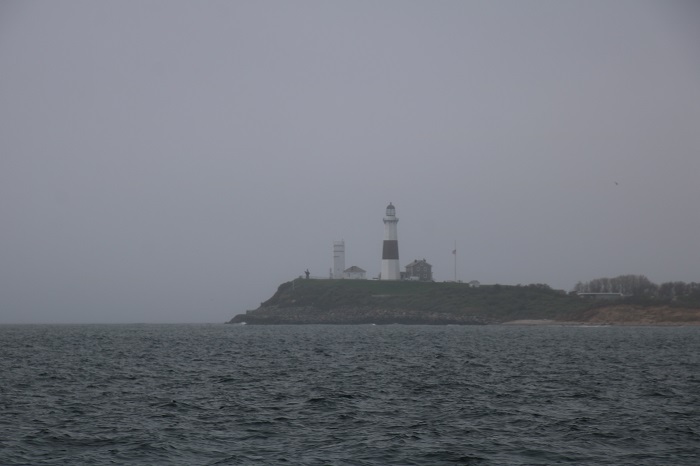 The fog was really thick as we approached Montauk earlier that morning with visibility of only a few hundred feet.  After months of clear warm weather in the Caribbean it was a shock to suddenly be in damp, cold fog. Montauk light.  Almost home. Visibility was closing in by the mile.The closer to shore we got the thicker the fog.   The Orient Point ferry emerged ominously from the low hanging fog bank off of New London. Nearly there, the mouth of the CT River. The last time I passed this point was the third week of October, last year. After nearly 4,000 miles under Pandora’s keel since passing this point last fall and 9 days since leaving Antigua, we were home and none the worse for wear.