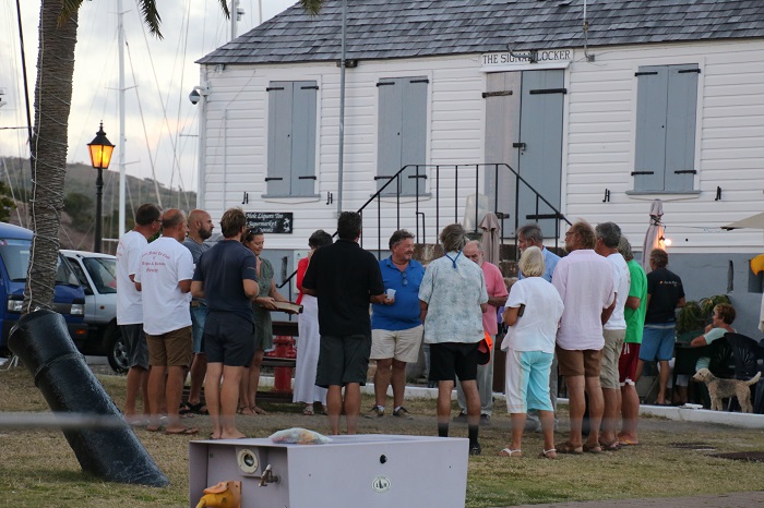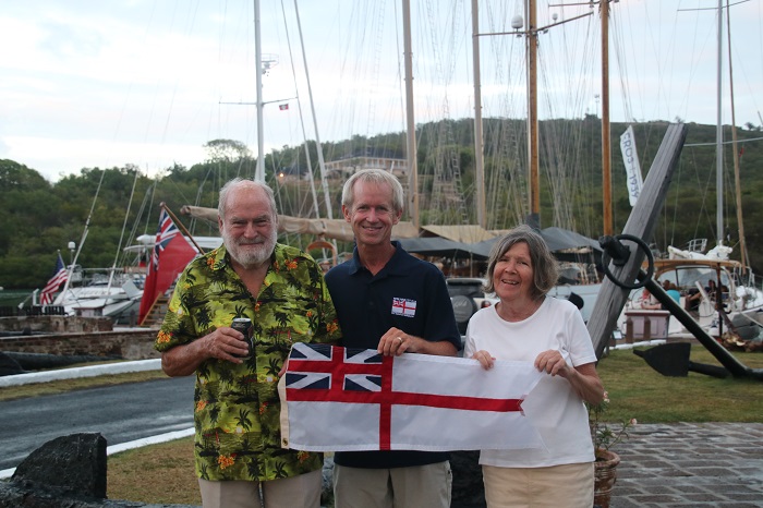But, I passed, by the skin of my teeth, I expect.  Here’s me and Simon on the night of my “induction” following my exhaustive oral testing by an official club “examiner”. As well as Ann, my sponsor, and her husband and one of the founders of the club, Mike.  If it weren’t for them I would not be a member.    I am looking forward to the arrival of the Salty Dawg Rally to Antigua next November and, as “Antigua Port Captain, the opportunity to introduce rally participants to The Royal British Navy Tot Club of Antigua and Barbuda.  Just try saying that three times fast after a ” full measure”.  And, believe me, that’s way easier than memorizing all that Nelson lore.