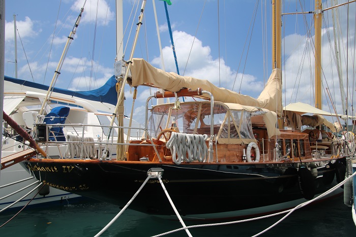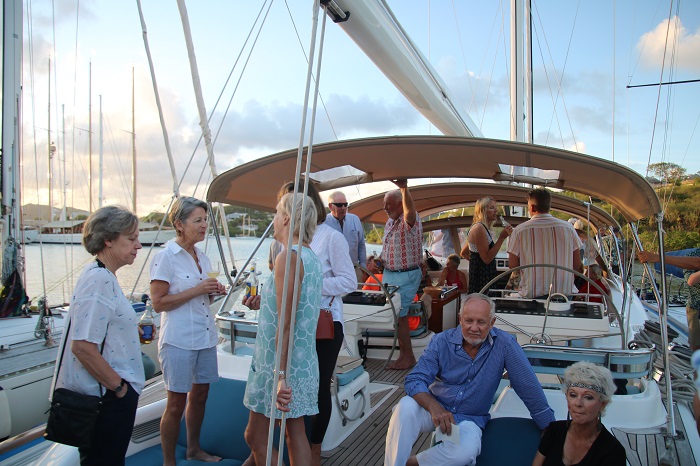 The Club is well known in Antigua and has members or guests with some pretty nice boats or homes who offer to host meetings of the club.  One such event was held and sponsored by an aspiring member aboard Ashanti, a 115′ schooner.  What a boat.  I wrote about that event in this post.  She’s spectacular and after leaving Antigua has begun a round the world journey via the Panama Canal. The club was also hosted, twice, aboard an 80′ Oyster by a member, another spectacular venue.  And, another event at a home overlooking Falmouth Harbor.  What a view. So, after 8 days and more tots than I can count, or remember, I took my test and passed.  And, let me tell you, I would not have passed if it weren’t for the help of Simon, a member that took nearly a half day to tutor me on the finer points of club and British Navy history along with facts about the various battles that Lord Nelson was involved in.
