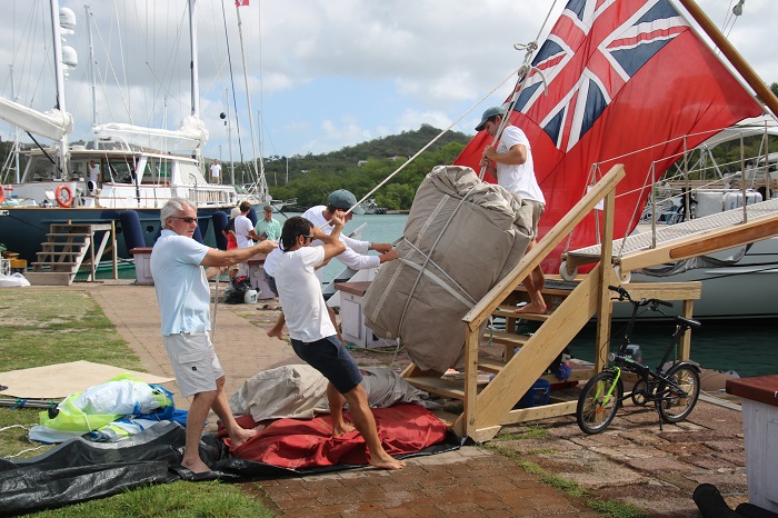 These yachts are big in every way. I watched as several crew worked to get one of her sails on deck. The process was very carefully choreographed. Pandora’s mainsail is a bit much for me to manage and it’s nothing like the sails on a boat like Adix.