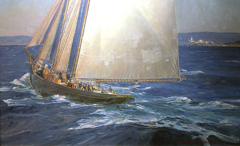 There is just nothing quite as beautiful as a classic schooner with a sweeping deck and towering masts. My good friend Christopher Blossom has painted images of many schooners over the years and while the age of fishing under sail is all but gone, images of these iconic yachts endure. This is one of many pieces that Chris has done, the fishing schooner Monitor.