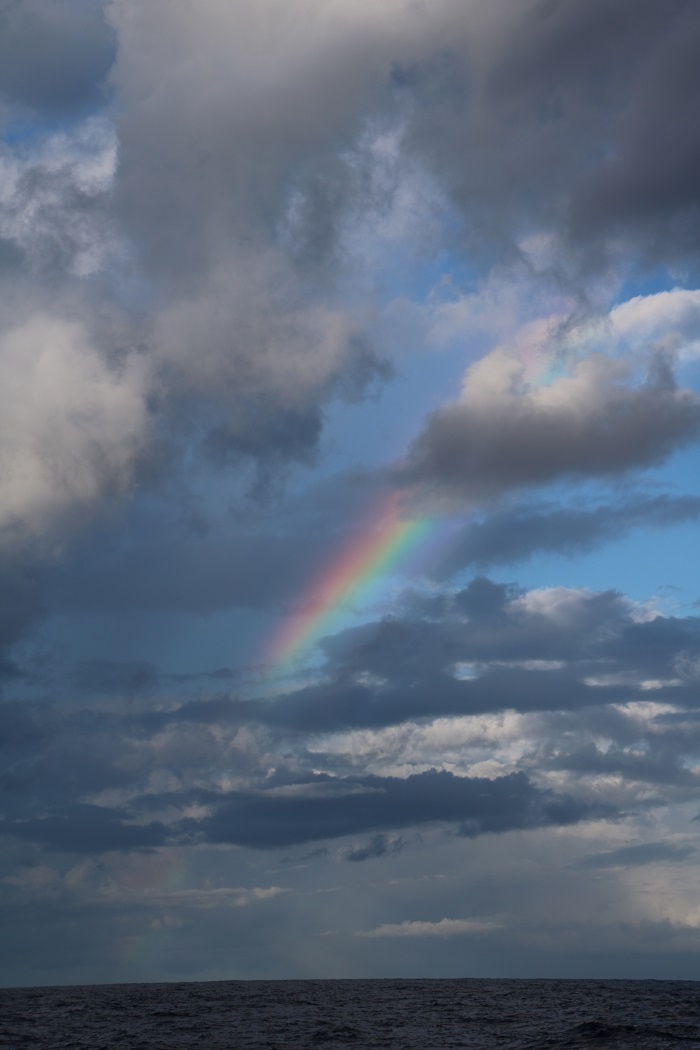 A Swan, with a hotshot delivery crew overtaking us on their way to Puerto Rico hundreds of miles south of Bermuda last fall. Hundreds of miles from, well, anything, and still, they came so close…A rainbow after a passing tropical shower.