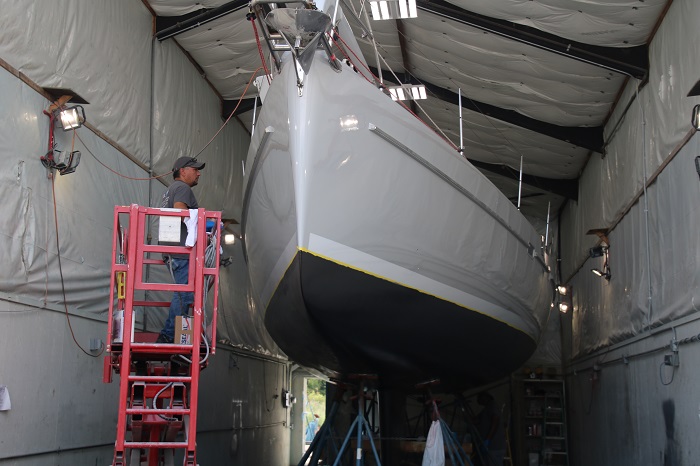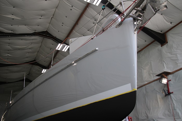 It’s about two months until the sailing season here in the North East ends and the fall migration south begins for those who don’t haul in the fall. While most of the folks I know are out sailing around New England waters, Pandora’s in a shed being painted.