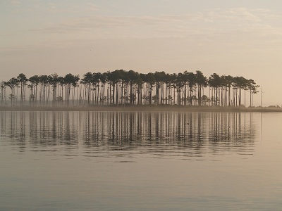 The character of the trees continues to change nearly every day. This morning I was struck with how nice a view we had of the pines on shore. Not sure what the name of these kinds are but I’ll bet that they use them for telephone poles. Perhaps “Pole Pines?”. Hmm…