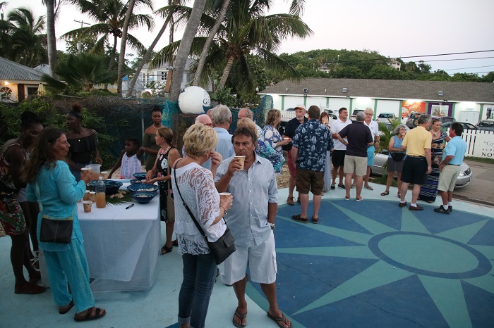 Our first event, held at Rhythm of Blue Art Gallery was a great way to kick off a week of celebration for skippers and crew. Nancy Nicholson, who owns this lovely gallery in English Harbor, timed her season opening to include us and it was a great evening, complete with a terrific reggae band, rum drinks and great sushi appetizers. I expect that Angie of Club Sushi, at the Yacht Club, had a hand in providing the sushi. I’m no expert but Angie does make great sushi.