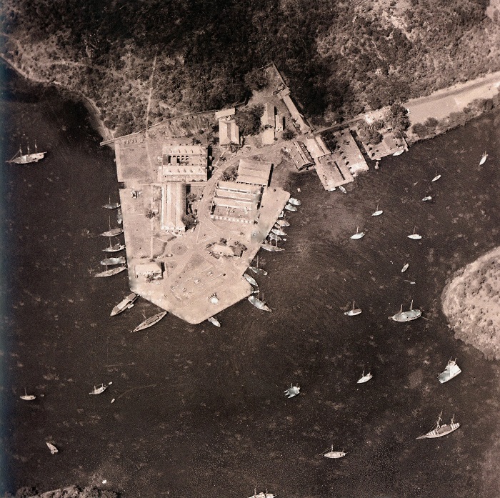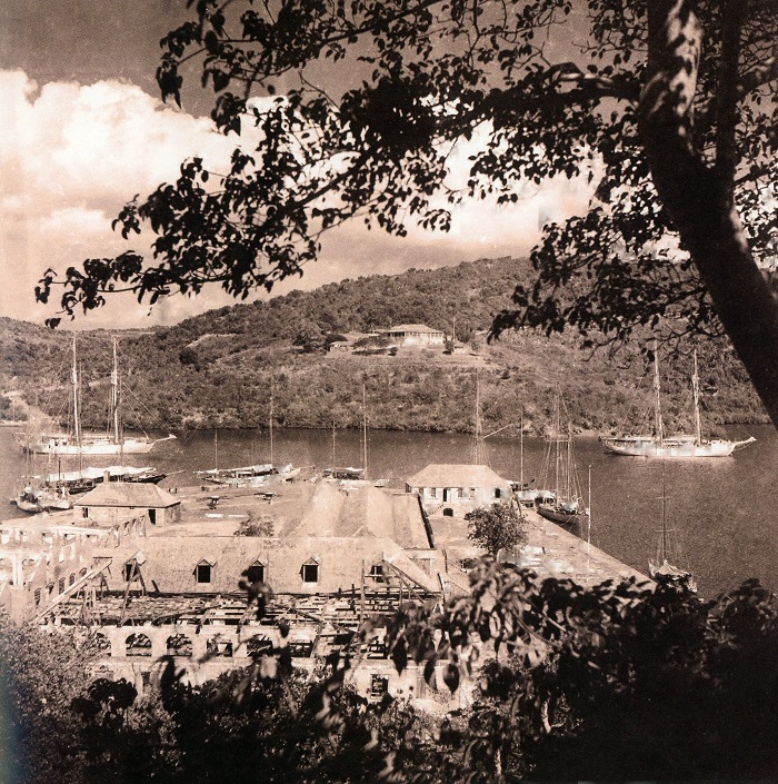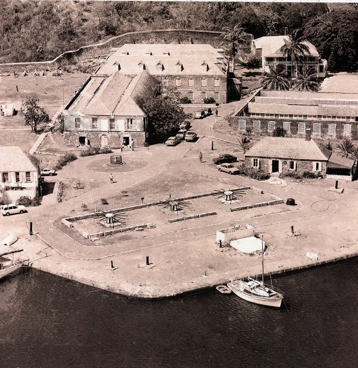 Shortly after arriving in Antigua, the Nicholson family received permission to take up residence in the abandoned Dockyard and set about doing what they could to improve the facility. No drones in those days. These photos were taken after much of the rebuilding was done, replacing missing roofs and walls.