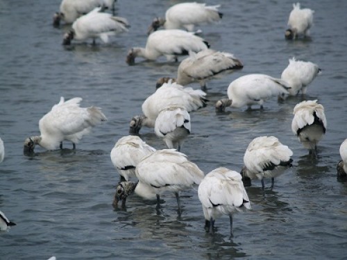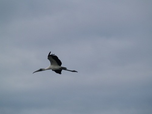 After our visit to the gardens our hostess, who I should also add bought us lunch, took us for a visit to a beach that was just teeming with wildlife. There were hundreds of birds, some quite large. These birds, wood storks, have a wingspan of some 5′. They seemed completely unperturbed by our presence. When they fly their wings are black and it’s an impressive sight. They are the largest shorebirds that live in South Carolina and are listed as endangered. Well, there are plenty of them here. However, we didn’t see any elsewhere on our trip so far.