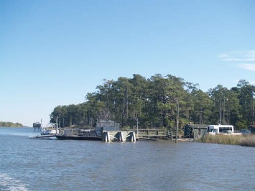 Today shortly after we got on our way we passed what I understand is the only ferry on the entire ICW. And, it’s not much of a ferry at that. This is such a remote area that you can go for miles without seeing a house or a bridge. I guess that there aren’t enough folks living here to warrant a bridge of their own.
